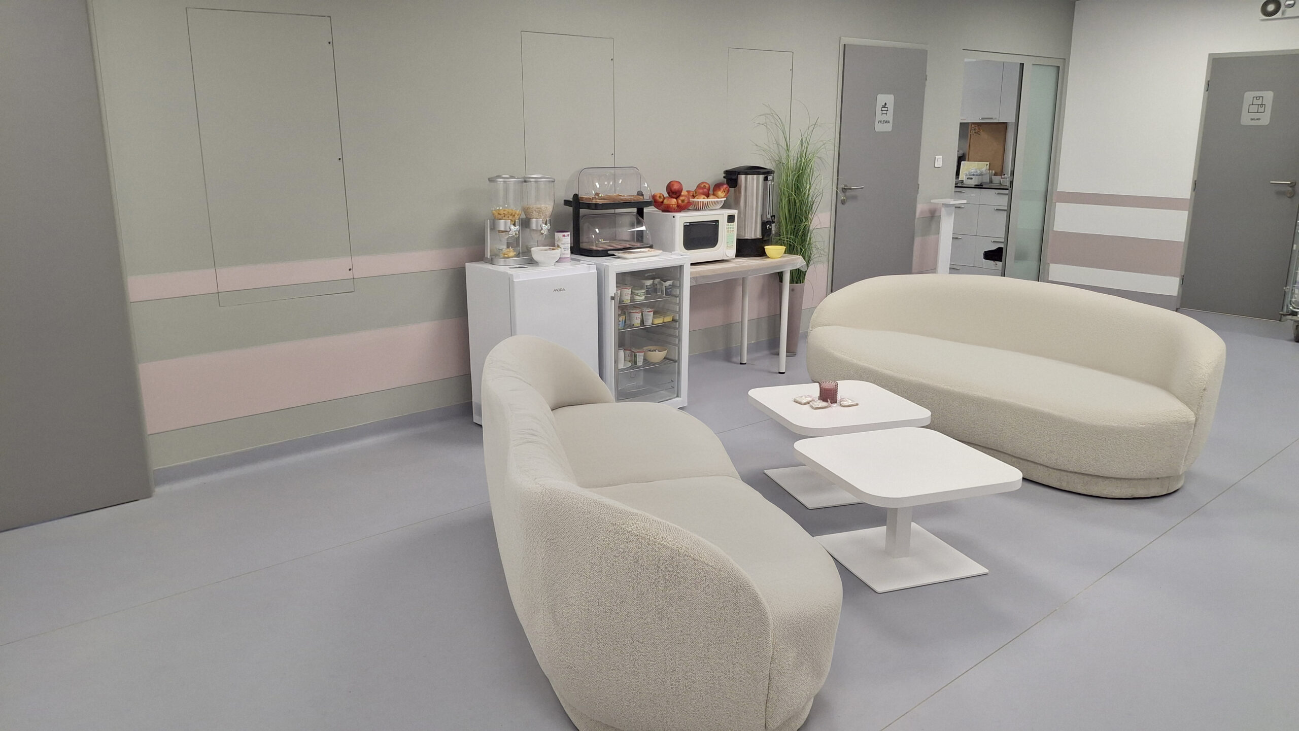 Doplnkovú stravu máme k dispozícii pre všetky šestonedieľky počas celého dňa: mliečne výrobky, šunku, syr, cereálie, ovocie, čaj na podporu dojčenia, ovocný čaj.